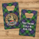 Clan Farquharson badge crête entouré d'une sangle et boucle sur l'arrière - plan tartan. Texte personnalisé des deux côtés.