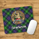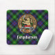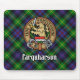 Clan Farquharson Wappen Abzeichen umgeben von einem Gurt und Schnalle über Tartan Hintergrund. Eigener Text.