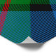 Clan Ferguson Wappen Abzeichen umgeben von einem Gurt und Schnalle über Tartan Hintergrund. Eigener Text.