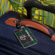 Handsome Gepäck Tag Features Scottish Clan Forsyth Wappen Abzeichen und Text auf tartan Hintergrund