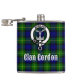 Zeige deinen schottischen Stolz! Clan Gordon Wappen Abzeichen mit Text auf dem Hintergrund des Clan Tartan.