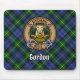 Clan Gordon Wappen Abzeichen umgeben von einem Gurt und Schnalle über Tartan Hintergrund. Eigener Text.