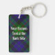 Clan Gunn badge crête entouré d'une sangle et boucle sur l'arrière - plan tartan. Texte personnalisé des deux côtés.