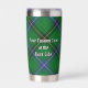 Clan Henderson Wappen Abzeichen umgeben von einem Gurt und Schnalle über Tartan Hintergrund. Benutzerdefinierter Text auf beiden Seiten.