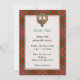Clan MacAlister Wappen Abzeichen umgeben von einem Gurt und Schnalle über Tartan Hintergrund. Benutzerdefinierter Text auf beiden Seiten.