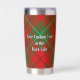 Clan MacAulay Wappen Abzeichen umgeben von einem Gurt und Schnalle über Tartan Hintergrund. Benutzerdefinierter Text auf beiden Seiten.