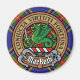 Clan MacBeth Wappen Abzeichen umgeben von einem Gurt und Schnalle über Tartan Hintergrund. Eigener Text.