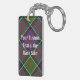 Clan MacDonald de Clanranald crête badge entouré d'une sangle et boucle sur l'arrière - plan tartan. Texte personnalisé des deux côtés.