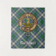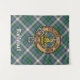 Clan MacDowall Wappen Abzeichen umgeben von einem Gurt und Schnalle über Tartan Hintergrund. Eigener Text.