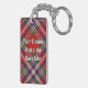 Clan MacFarlane écusson de crête entourée d'une sangle et boucle sur l'arrière - plan tartan rouge. Texte personnalisé des deux côtés.