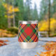 Clan MacGill insigne crête entouré d'une sangle et boucle sur l'arrière - plan tartan. Texte personnalisé des deux côtés.