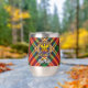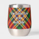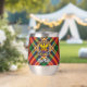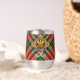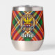 Clan MacGill Wappen Abzeichen umgeben von einem Gurt und Schnalle über Tartan Hintergrund. Benutzerdefinierter Text auf beiden Seiten.