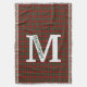 Farbenfrohe karierte Wurfdecke aus dem roten und grünen Klan MacGregor Tartan karierte Muster. Ein großes weißes Monogramm mit einem Buchstaben ist bereit, zusammen mit dem grünen Text, der den großen Buchstaben hinunter läuft, eine individuelle Note zu erhalten. Die Lage des Hotels ist sehr gut.