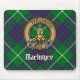 Clan MacIntyre Wappen Abzeichen umgeben von einem Gurt und Schnalle über Tartan Hintergrund. Eigener Text.