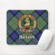 Clan MacLaren Wappen Abzeichen umgeben von einem Gurt und Schnalle über Tartan Hintergrund. Eigener Text.