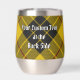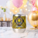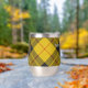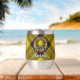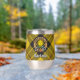 Clan MacLeod de l'insigne crête de Lewis entouré d'une sangle et boucle sur l'arrière - plan tartan. Texte personnalisé des deux côtés.