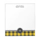 Personalisiertes Notizblock mit kariertem Rahmen und Monogramm. Traditionelles schottisches kariertes Muster in hellgelb und schwarz, mit roten Akzenten.