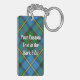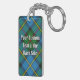 Clan MacLeod Wappen Abzeichen umgeben von einem Gurt und Schnalle über grünem Jagdtartan. Benutzerdefinierter Text auf beiden Seiten.
