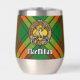 Clan MacMillan badge de crête entouré d'une sangle et boucle sur l'arrière - plan tartan. Texte personnalisé des deux côtés.