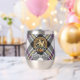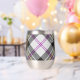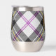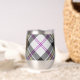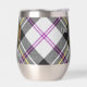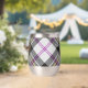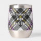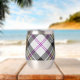 Clan MacPherson crête badge entouré d'une sangle et boucle sur l'arrière - plan écossais habillé. Texte personnalisé des deux côtés.