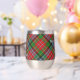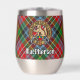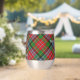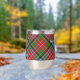 Clan MacPherson Wappen Abzeichen umgeben von einem Gurt und Schnalle über Tartan Hintergrund. Benutzerdefinierter Text auf beiden Seiten.