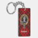 Clan MacQueen badge en crête entouré d'une sangle et boucle sur fond tartan. Texte personnalisé des deux côtés.