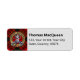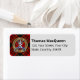 Clan MacQueen hat einen Crst-Abzeichen umgeben von einem Gurt und Schnallen über dem Hintergrund des Tartanes. Benutzerdefinierte Textfelder für Name und Adresse.