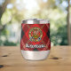 Clan Marjoribanks Wappen Abzeichen umgeben von einem Gurt und Schnalle über Tartan Hintergrund. Benutzerdefinierter Text auf beiden Seiten.