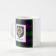 Diese klassische weiße Tasse kennzeichnet die alten Arme des Clans McLennan gelegt auf dem Clan Tartan auf einer Seite und einer anderen Version des Clan-Wappen-Abzeichens auf der anderen Seite.