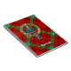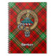 Clan Morrison Wappen Abzeichen umgeben von einem Gurt und Schnallen über rot Tartan Hintergrund. Eigener Text.