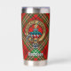 Clan Morrison Wappen über Red Tartan Thermobecher
