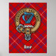 Clan Rose Wappen Abzeichen umgeben von einem Gurt und Schnallen über Tartan Hintergrund. Eigener Text.
