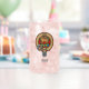Clan Scott badge crête entouré d'une sangle et boucle sur l'arrière - plan tartan rouge. Texte personnalisé des deux côtés.