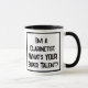 Drôle slogan sur une tasse à café à deux tons qui dit "Je suis un Clarinetiste. Quel est VOTRE super talent ?" Deux Tone Café Mug pour un Clarinettiste ou quelqu'un qui joue de la clarinette. Texte en gras noir et blanc.