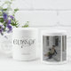 Celebrate senior year with a personalized two photo graduation mug designed to capture favorite moments from the Class Of celebration. This coffee mug features an elevated serif Class Of design with subtle star accents and an integrated tassel detail on one side, paired with a two photo wrap on the opposite side to showcase meaningful senior photos.