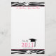 Papeterie pour des diplômés comportant le texte en haut de qui lit "une note…" Personnalisez avec votre nom. Basez les caractéristiques de conception le texte "classe de 2011" avec une illustration de casquette d'obtention du diplôme. Customisez avec votre nom d'école sous la conception. Conception d'impression de zèbre à travers le dessus et le bas. Articles assortis Look for dans la section rose de "magasin d'obtention du diplôme" d'école.