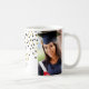 Classe de modèle photo personnalisable de 2025 tasse de graduation avec motif de confetti noir et or.