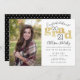 Cette invitation moderne et simple à obtenir un diplôme comporte une photo, un texte doré et peut être utilisée pour un diplôme d'études collégiales ou secondaires. Choisissez parmi les différentes options de couleur à l'arrière.
