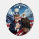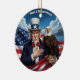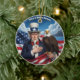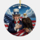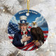 • This classic round ceramic ornament features a striking digital illustration of bold American symbols in vivid red white and blue. It makes a thoughtful, long-lasting keepsake perfect for any patriotic holiday or occasion throughout the year.