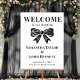Faites une déclaration audacieuse et intemporelle avec ce panneau d'accueil d'inspiration cravate noire. Avec son style très contrasté et sa typographie propre, il est parfait pour les mariages formels et les lieux de luxe.