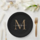 Einfache, moderne Black Gold Monogram Moderne Feminine Script Name Paper Plate