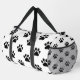 Classic Black Paw Print White Duffle Bag
