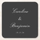 Stilvolle formale Klassische Schrift Eleganter Hochzeitsskript Einladung Custom Square Paper Untersetzer mit White Text auf einem schwarzen Hintergrund