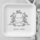 Elegant black and white floral crest wedding paper plate with monograms, perfect for a modern classic or romantic vintage wedding. For more advanced customization of this design, please click the BLUE DESIGN TOOL BUTTON above! Matching items are also available.