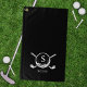 This unique classic black and white monogrammed golf towel features crossed golf clubs with ball holding the monogram initial, and the name underneath.