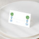 Handgemalte Boxholz Topiary Ball mit blauem Bogen und in einem Ingwerjar. Dies passt zu einer Reihe von Baby Duwer Einladungs-Designs, aber wirklich diese Platzkarten könnten für jede clevere Veranstaltung, z.B. ein Taufe Empfang verwendet werden.