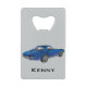 Klassischer Blue Corvette Design Flaschenöffner mit anpassbarem Text auf Vorder- und Rückseite und Hintergrundfarbe.
