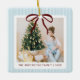 Classic Blue Stripes Red Bow Christmas Keramikornament