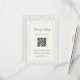 A formal and elegant online RSVP card with information about your wedding website so that guests can respond online. This design features preppy blue stripes as a background and elegant, timeless typography. Be sure to replace the QR code URL with your own website URL.