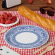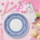 Schöne Blue Willow Papier Teller für Ihre nächste Veranstaltung! Ein klassischer Blue Willow-Rahmen mit anmutigen, sauberen Linien umkreist den Teller mit Platz im Zentrum für Personalisierung.